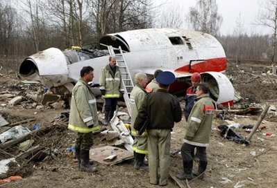 救援人員抵達(dá)波蘭總統(tǒng)專(zhuān)機(jī)墜毀現(xiàn)場(chǎng)。 資料圖