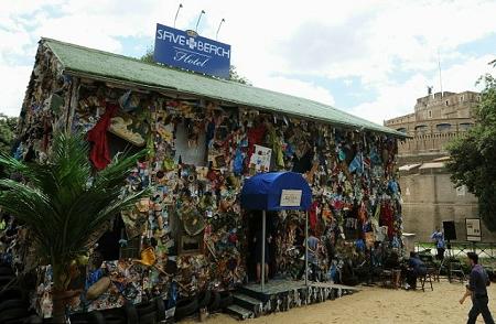 這家酒店名為“保護(hù)海灘”,位于臺(tái)伯河畔圣安琪兒古堡旁,出自德國藝術(shù)家哈·舒爾特之手。它共有5個(gè)房間,用去12噸垃圾,其中包括塑料袋、漁網(wǎng)、舊衣服、玩具、易拉罐等,甚至包括一只搖擺木馬和人體模型的一條腿。
