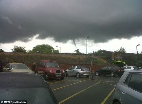 6月9日下午,在萊斯特郡的哈伯勒鐵路上空出現了黑壓壓的漏斗型龍卷風。