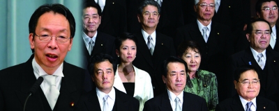 6月8日,在東京首相官邸,新任日本首相菅直人(前中)率內(nèi)閣成員在媒體前集體亮相。當(dāng)日,日本新當(dāng)選首相菅直人組建新一屆內(nèi)閣。新華社記者 季春鵬攝