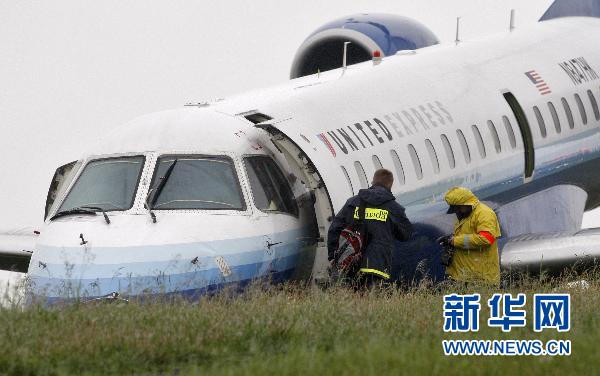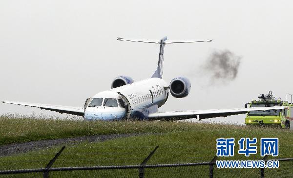 6月16日,工作人員在加拿大渥太華國際機場檢查滑出跑道的美聯(lián)航飛機。機場新聞發(fā)言人當(dāng)天說,這架由巴西航空工業(yè)公司制造的飛機從美國華盛頓飛抵渥太華時滑出跑道,但沒有造成人員死亡或重傷。 新華社/路透