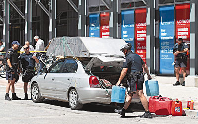 據(jù)香港《文匯報(bào)》26日?qǐng)?bào)道,G20峰會(huì)前夕,各成員國領(lǐng)袖陸續(xù)抵?,加拿大警方在多倫多市采取極嚴(yán)密保安措施。連日來已有3名可疑人士被捕,其中1名53歲男子前日駕車經(jīng)過峰會(huì)會(huì)場(chǎng)禁區(qū),由于車頂綁著1個(gè)鋼制儲(chǔ)物箱,模樣怪異,引起警方注意。警察攔車檢查,赫然發(fā)現(xiàn)車上有十字弓、電鋸、棒球棍、大錘外,還有多種不明液體。警方?jīng)]收這批物品,并將他拘捕。
