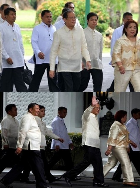 菲律賓當選總統阿基諾三世當地時間30日準備宣誓就職(上圖中)(下圖右三)