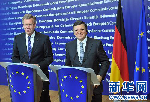7月8日,在比利時首都布魯塞爾,德國新任總統武爾夫(左)與歐盟委員會主席巴羅佐舉行會談后一同出席新聞發布會。新華社記者武巍攝