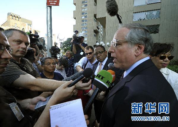 7月8日,在美國紐約曼哈頓聯邦法院,俄羅斯間諜嫌疑人安·查普曼的辯護律師羅伯特·博姆接受記者采訪。 俄羅斯克里姆林宮9日說,俄總統德米特里·梅德韋杰夫簽署命令,釋放4名美國間諜及家屬,換取遭美國逮捕的10名俄羅斯間諜嫌疑人。 新華社/法新