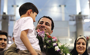 阿米里回到德黑蘭后,抱起分別一年多的兒子。