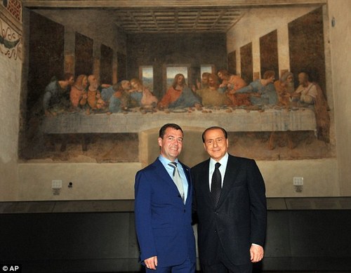 在俄羅斯總統格梅德韋杰夫前往意大利度假期間,意大利總理貝盧斯科尼與之一同前往米蘭圣瑪麗亞感恩教堂參觀達芬奇名畫《最后的晚餐》。
