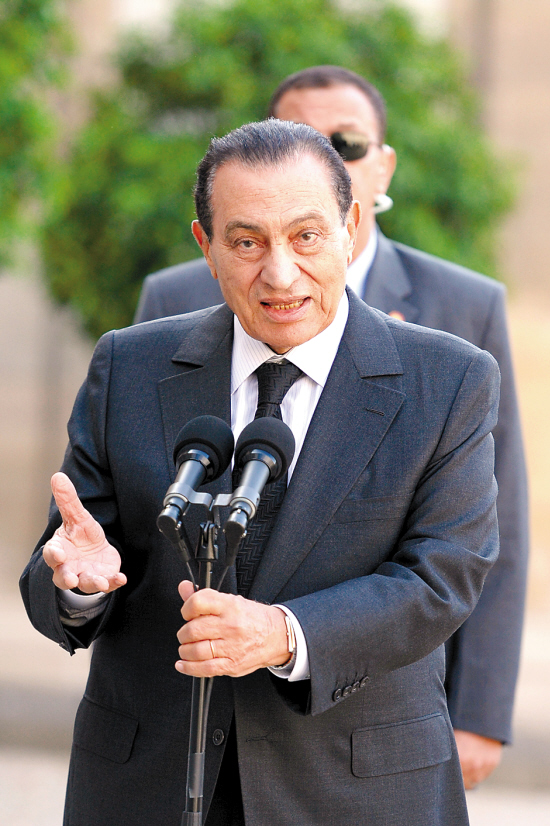 資料圖:7月5日,在法國訪問的穆巴拉克