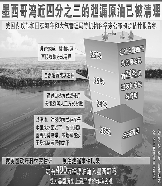在處理漏油危機期間,英國石油公司在海面和海底共使用了180萬加侖(1加侖約合3.79升)的化學分散劑。美國食品和藥物管理局副局長珍妮·艾爾蘭上周表示,分散劑成分并沒有在墨西哥灣的魚類體內顯著堆積,即使魚類用鰓吸入了這種化學物質,它們體內也不會存留。