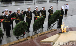 據俄新網2日報道,向俄羅斯太平洋艦隊戰斗光榮紀念碑敬獻花圈和鮮花儀式當天在俄符拉迪沃斯托克舉行,由此拉開了第二次世界大戰勝利65周年紀念活動的序幕。