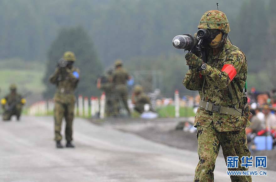 資料圖 8月24日,參演士兵在日本陸上自衛(wèi)隊2010年富士綜合火力演習(xí)上展示110毫米單兵反坦克武器。當(dāng)日,日本陸上自衛(wèi)隊開始在富士山下的靜岡縣御殿場市東富士演習(xí)場舉行2010年綜合火力演習(xí)。日本陸上自衛(wèi)隊各式坦克、武裝直升機、裝甲車輛等大批武器裝備和超過2000名自衛(wèi)隊官兵參演。本年度富士火力演習(xí)將持續(xù)到29日。新華社記者 季春鵬 攝