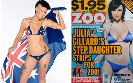 澳大利亞媒體報道說,目前困擾吉拉德的“煩心事”還不止這一件。13日,吉拉德的“準(zhǔn)繼女”菜爾德被爆于近日為澳時尚男性雜志拍攝了一組“大膽”艷照。在照片中,菜爾德身穿比基尼露出多處文身,還擺出各種迷人姿勢與澳國旗合影。