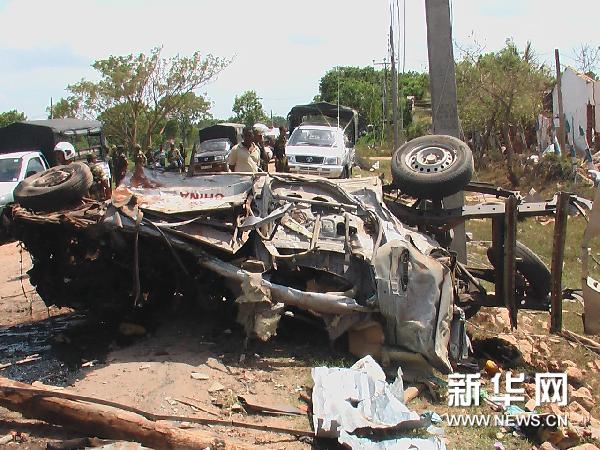 這是9月17日在斯里蘭卡東部拜蒂克洛鎮(zhèn)的爆炸現(xiàn)場拍攝的被炸毀車輛。新華社發(fā)