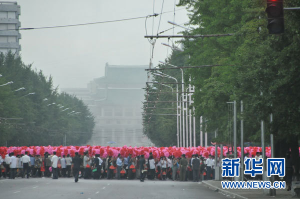 資料圖片:9月5日,在朝鮮首都平壤,市民們參加勞動黨代表會議召開慶;顒拥难菥殹P氯A社記者高浩榮攝