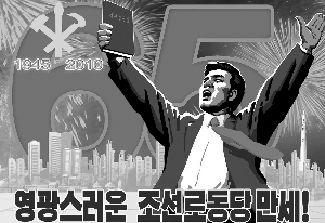 朝鮮勞動黨建黨65周年宣傳海報,該黨代表會議定于9月28日在首都平壤舉行,選舉黨的最高領導機構。