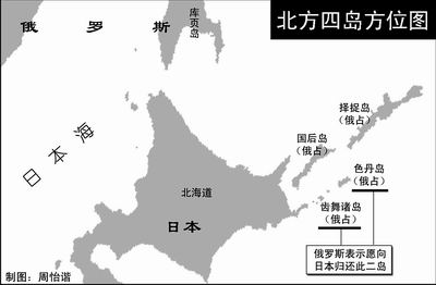 俄羅斯與日本之間長期以來圍繞北方四島(俄羅斯稱南千島群島)問題一直存在爭端。北方四島指日本北海道以北的齒舞、色丹、國后和擇捉四島。二戰結束以后,這些島嶼先在蘇聯、后在俄羅斯聯邦的管轄之下。長期以來,日俄在四島歸屬問題上互不讓步。日本政府堅持解決北方四島歸屬問題是締結日俄和平條約的前提條件。(記者魏良磊)