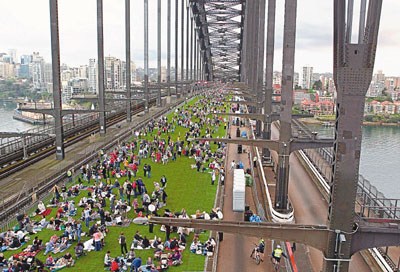 悉尼大橋草皮坐滿開(kāi)餐民眾。
