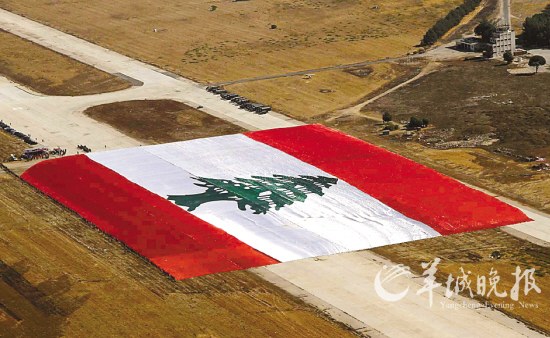 這幅國旗展開面積為6.5萬平方米,國旗正中綠色雪松圖案面積為10452平方米,這一數字恰好與以平方公里為單位的黎巴嫩國土面積數字相同。