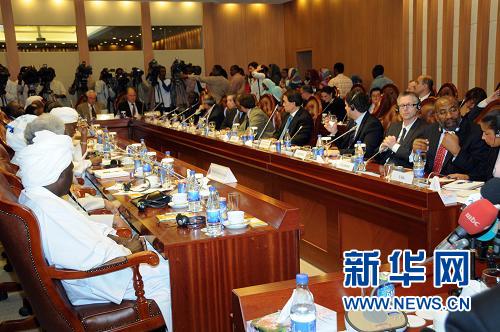 10月9日,聯合國安理會成員國常駐聯合國代表組成的代表團在蘇丹外交部舉行了會談,討論了蘇丹南部地區將在明年1月舉行的公投以及達爾富爾形勢等問題。新華社發(穆罕默德·巴比克爾攝)