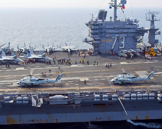 7月27日,韓美軍演繼續進行,從韓國“獨島”號運輸艦起飛的SH-60S“海鷹”直升機降落在美軍“華盛頓”號航母上。來源:美國海軍網站