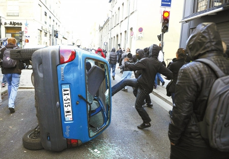 法國參議院定于20日及21日就政府力推的退休制度改革方案進行辯論及表決,而法國街頭的罷工潮20日卻愈演愈烈,暴力活動開始在一些城市滋生。從首都巴黎到南部海港馬賽,示威民眾投擲石塊,劫掠商店、焚燒汽車。法國總統薩科齊當天說,他已下令警察突破罷工民眾對燃油倉庫的封堵,以恢復燃油供應。