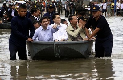 泰國總理阿披實(shí)到災(zāi)區(qū)視察。