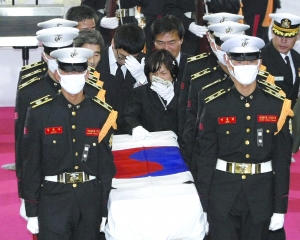 27日上午,兩名陣亡士兵的遺體告別儀式在城南市的一家軍隊醫院內舉行。包括韓國總理金滉植、軍方高級官員和陣亡士兵家屬等數百人出席儀式。