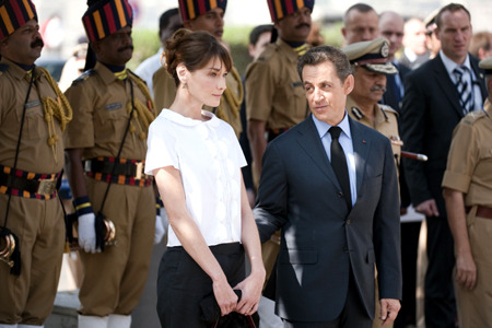 7日,薩科齊偕妻子布呂尼在印度孟買參加為孟買恐怖襲擊遇難者舉行的悼念儀式。