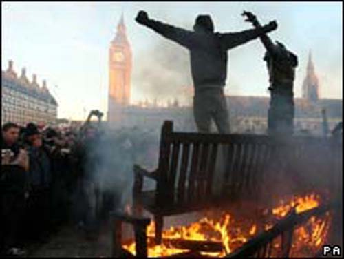 抗議學生對國會通過調升學費案,情緒激動,轉向國會附近地區,熱鬧購物街牛津街的商家窗戶被砸壞。連搭車經過的查爾斯王子伉儷,也被抗議者包圍。