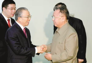 9日,金正日在平壤會見了中國國務(wù)委員戴秉國。新華社圖