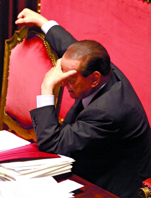13日,意大利羅馬,總理貝盧斯科尼在國會參議院發表演講后休息。