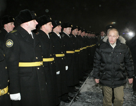 13日,普京視察北方機械制造廠時看望了“亞歷山大·涅夫斯基”號核潛艇的官兵。