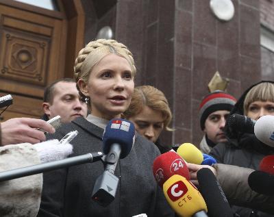 12月15日,季莫申科在烏克蘭總檢察院外接受采訪。