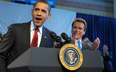 美國總統(tǒng)奧巴馬與加州州長(zhǎng)施瓦辛格(資料圖)