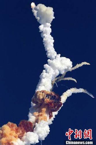 12月25日,印度新型通信衛(wèi)星發(fā)射升空后爆炸特寫圖。來源:中國新聞網(wǎng)