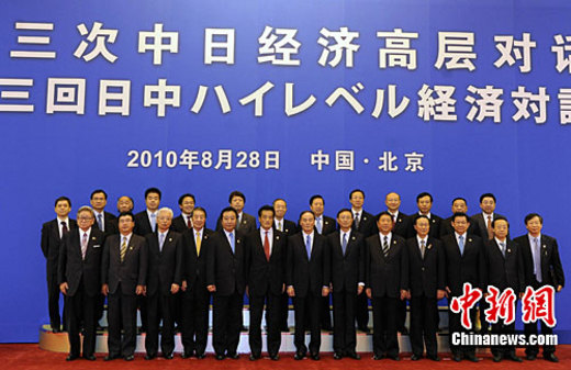 8月28日,第三次中日經濟高層對話在北京人民大會堂舉行。中國國務院副總理王岐山、日本外相岡田克也等出席。中新社記者 劉震 攝