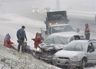 在華盛頓州的交通部出動了200輛撒防滑鹽沙的貨車、鏟雪車等清理路面的15厘米積雪。