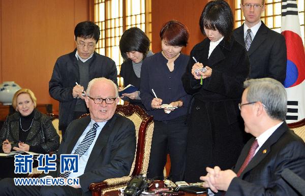 2011年1月5日美國朝鮮問題特使訪韓1月5日,在韓國首爾,美國朝鮮問題特使斯蒂芬·博斯沃思(左)與朝核問題六方會談韓國團(tuán)團(tuán)長魏圣洛(右)會談。