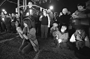 1月9日,亞利桑那州圖森市市民在女議員吉福茲位于當(dāng)?shù)氐霓k公室外點燃蠟燭,為其祈禱。