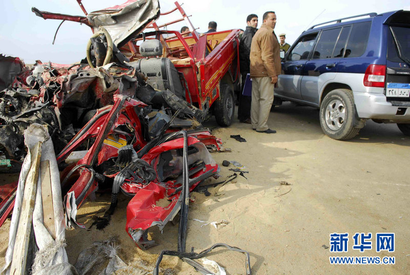 這是1月11日在埃及東部省拍攝的車禍現場。埃及東部省11日發生兩起交通事故,共造成至少32人死亡、27人受傷。當地警方初步判斷,濃霧和駕駛超速是造成這兩起事故的主要原因。新華社發