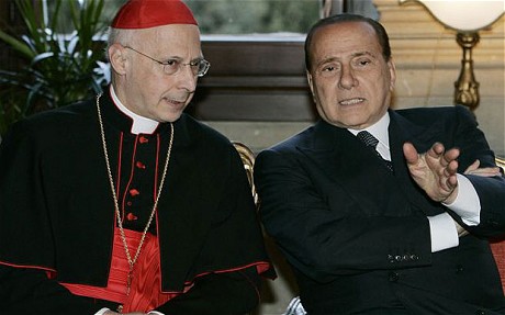 意大利紅衣主教安杰洛 巴尼亞斯科和丑聞纏身的總理貝盧斯科尼