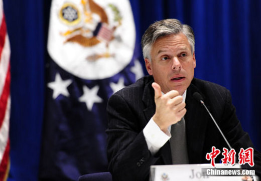 1月12日下午,在中國(guó)國(guó)家主席胡錦濤即將訪問(wèn)美國(guó)之前,美國(guó)駐華大使洪博培在大使館舉辦一場(chǎng)媒體見(jiàn)面會(huì)。洪博培表示,美中兩國(guó)目前關(guān)系良好。中新社記者 侯宇 攝