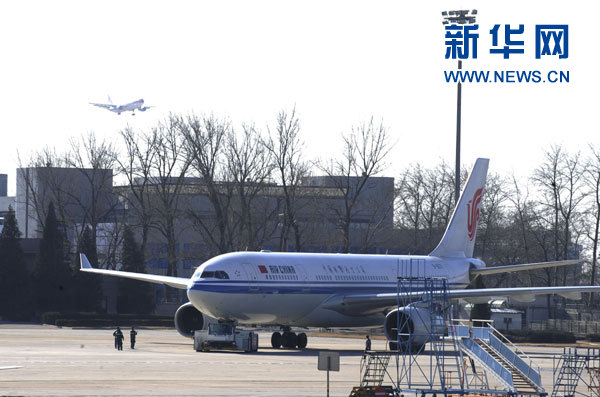1月31日11時30分,國航派出赴埃及首都開羅的空客A330客機(jī)準(zhǔn)備出發(fā)。新華社發(fā)(馬儒壯 攝)