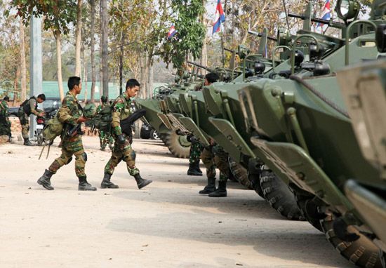 2月9日,大批柬埔寨士兵駐扎在柬泰邊境柏威夏寺附近地區,為可能再次爆發的柬泰武裝沖突做準備。