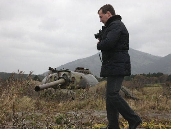 2010年11月1日,俄羅斯總統(tǒng)梅德韋杰夫登上南千島群島(日本稱北方四島)。