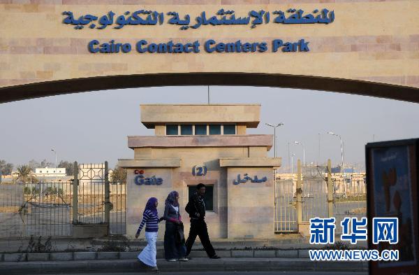 2月13日,幾位市民從埃及首都開羅一處公園門口走過。新華社記者金良快攝