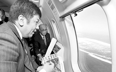2月19日,日本內閣官房長官枝野幸男搭乘飛機從空中視察日本主張擁有主權的“北方四島”。