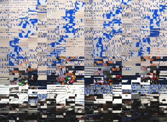 2011年2月21日,前蘇聯總統戈爾巴喬夫(中)在俄羅斯首都莫斯科出席一場新聞發布會。