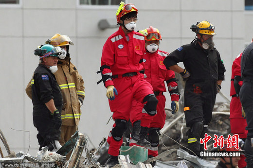 2011年2月26日,新西蘭克萊斯特徹奇,中國救援隊在CTV大樓展開救援工作。除廢墟清理工作外,中國救援隊還將利用生命探測設備搜尋幸存者。