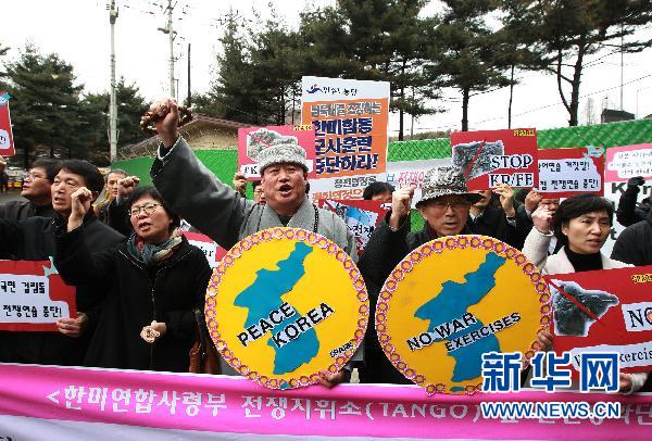 韓國和美國2月28日至3月10日同時舉行代號為“關(guān)鍵決心”和“禿鷲”的聯(lián)合軍演。韓國媒體的報道說,這些演習(xí)不僅針對朝鮮發(fā)生“劇變事態(tài)”,還包括清除朝鮮核武器和導(dǎo)彈威脅。與此同時,美日也從2月28日起舉行“針對朝鮮導(dǎo)彈威脅”的為期4天的模擬攔截彈道導(dǎo)彈演習(xí)。